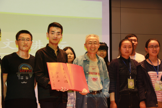 戴建业教授还与同学们分享了自己研究和学习中国古诗词的经历,他与同学们就如何“阅读”唐诗和宋词进行了交流。戴老师说,读诗词不能靠“背诵”,而是要用心体会,通过了解文学背景,诗词发生的情境去体会和走进诗人的心灵世界,体会诗人的情感。他说,自己在阅读古诗词的同时也在和诗人进行灵魂交流,走进诗人的生活,体会诗人丰富、细腻的情感和人生,理解他们的人生格调。戴老师还叮嘱同学们, 从诗词中还要学会“规划自己的人生,正确面对挫折”。他坦言,人可以规划你的人生,但很多事情在你的规划之外,自己能够走到今天这一步,具有很大的偶然性,回忆过去,一点都不后悔。酸甜苦辣,都品尝过,所以对中国古典文学和诗词有了更深的体会和感悟。