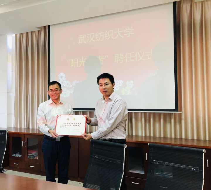 付杰研究员对学校的重视与信任表达了感激之情。他表示,自己与武汉纺织大学有很久的渊源,这次受聘学校“阳光学者计划”讲座教授,为将之前的合作向纵深推进提供了更好的平台,他希望进一步加强双方在学术交流、人才培养、项目申报等方面的合作力度,不断提升学院核心竞争力,并已派其博士生李章来我校开展为期半年的学术交流与科学研究。