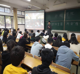 为认真落实全国“两会”精神,加快推进高质量跨越式发展,增强大学生的思想政治理论素养。环境工程学院于3月10号下午五点半在六栋教学楼110教室召开“学习2019年全国两会精神”的大会,各级辅导员参加了此次大会。