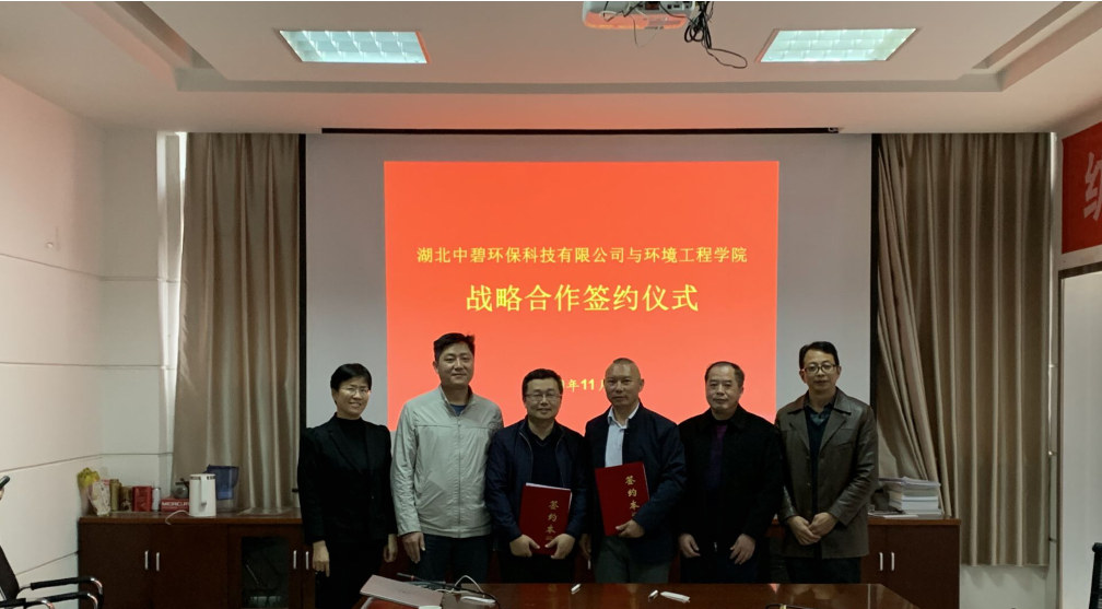 湖北中碧环保科技股份有限公司是一家专业从事工业三废、土壤与河湖修复、环保成套设备的生产与销售、工业废弃物、城市垃圾再生利用、水资源净化工艺的研发、环保技术服务为一体的国家高新技术企业。 公司与多所“985”、“211”高校结成了产、学、研联合体,建立了“校企共建水处理技术研发中心”、“中碧环保(李圭白)院士工作站”、湖北省“企业技术中心”、湖北省高难度工业污水处理的“工程技术研究中心”等研发平台。我院与中碧环保在污水处理的深度合作必将极大的促进教学、科研和人才培养的提高,互利共赢。