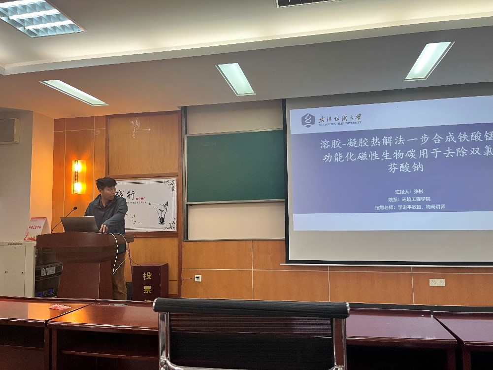 钟梦琪同学重点从元素组成、近似分析和热值等方面讨论了混纺织物的性能,实验结果表明利用棉-涤协同作用去除Cr(Ⅵ)具有较大的应用潜力。