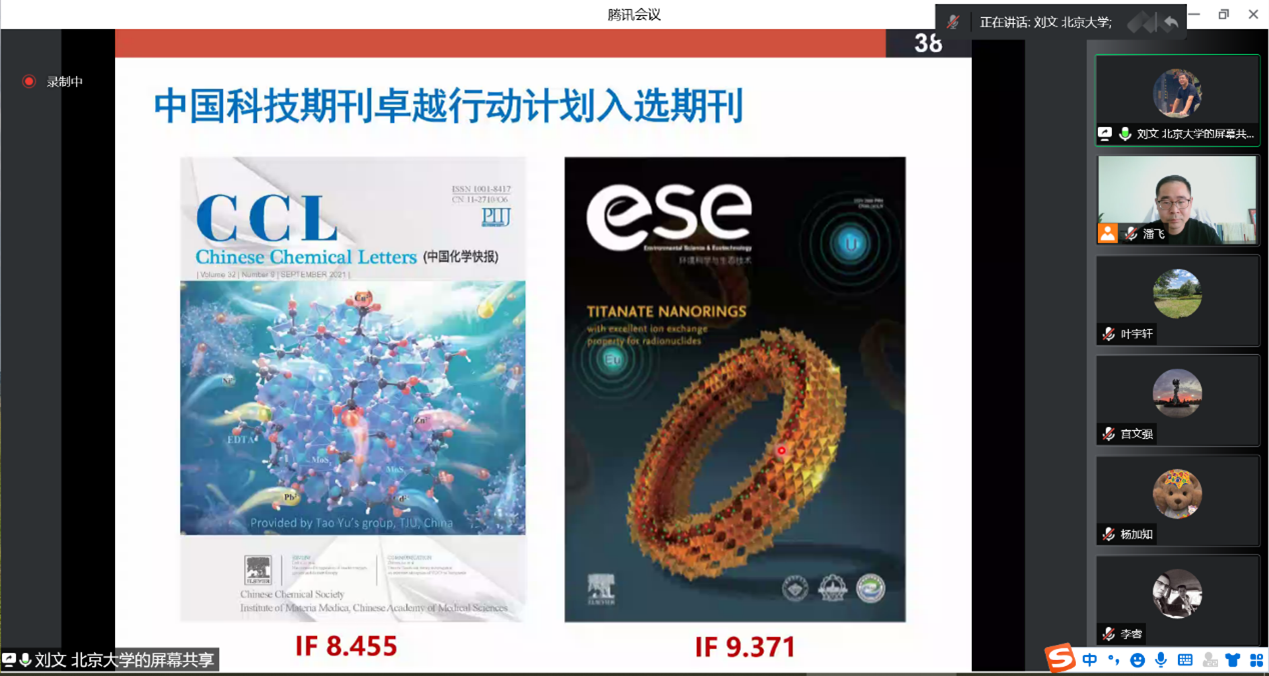 汇报人简介:刘文 北京大学环境科学与工程学院研究员、博士生导师。入选国家高层次人才计划青年项目,国家重点研发计划“纳米前沿”专项青年项目首席科学家。北京大学环境工程系副主任、北京大学环境纳米技术实验室主任、北京环境科学学会科技创新分会主任。另入选北京市科技新星计划,获中国环境科学学会青年科学家奖(金奖)、2021年环境保护科学技术二等奖(2/9)、紫金全兴环境基金青年科学家奖等荣誉。从事水污染控制理论与技术、环境功能材料、环境纳米技术、现代环境工程发展战略等研究,在国内外学术期刊上发表论文200余篇,第一/通讯作者SCI论文80余篇,其中ESI高被引论文20篇。论文总被引8000余次,h-index 52(Google Scholar)。作为项目负责人主持国家重点研发计划青年项目、国家自然科学基金、国家和北京市人才项目、企事业单位委托项目等项目/课题10余项。入选美国斯坦福大学发布的2020、2021年世界排名前2%科学家排行榜“年度影响力榜单”,以及全球学者库评出的“全球顶尖前10万科学家名单”。担任Environmental Functional Materials创刊副主编,Chinese Chemical Letters、Environmental Functional Materials等期刊副主编。