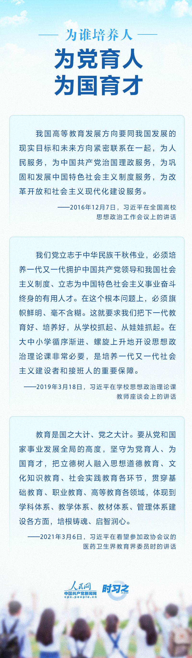 教育兴则国家兴,教育强则国家强。培养什么样的人、如何培养人以及为谁培养人,一直是习近平强调的重中之重。