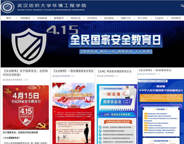 为加强国家安全教育系列法律法规宣传,增强学生的国家安全意识,丰富学生国家安全知识,从4月11日起,在学院主页及微信公众号上,持续推送相关国家安全知识,如“关于国家安全、这些知识你知道”“两张图读懂国家安全法”“一图读懂国家安全规定”等,用简单易懂的方式让学生熟知相关知识。