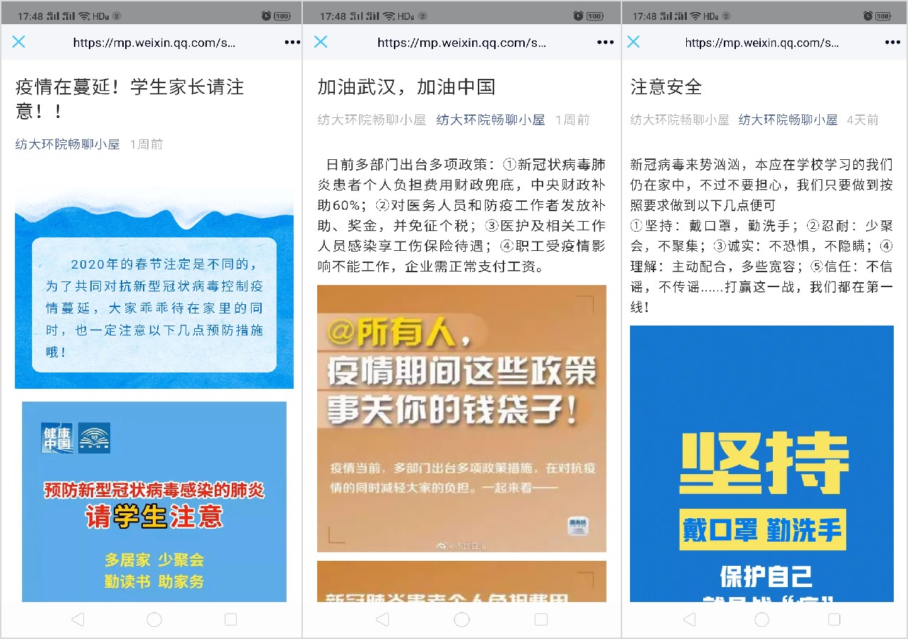 在这场没有硝烟的战场上,发生了很多的不幸,也留下了无数动人的故事,点亮了人民战胜疫情的信心和希望。及时将党和政府的声音传递出去,鼓励大家消除恐慌、科学预防、众志成城、抗击疫情;第一时间把师生善举、正能量和心声表达出来,坚定理想信念,这是我们的担当与责任。