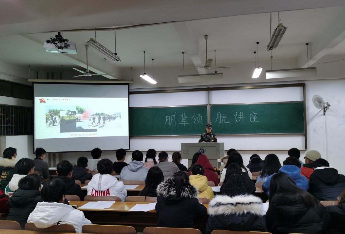 为培养青年学子爱国情怀,鼓励积极投身绿色军营,12月13日晚,崇礼楼110教室座无虚席,学院退伍学生肖洁丽以《爱国心 军人魂 青春志》为题,举行朋辈领航讲座。