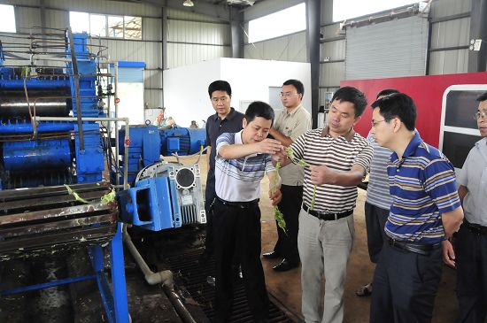 在苎麻产业园生产基地,王亚武副处长认真观看了苎麻加工的各道工序及样品,并听取了联盟成员单位的项目研究进展情况汇报和苎麻产业“十二五”研究计划。王处长对国家科技支撑计划项目稳步推进非常欣喜,并给予充分肯定。他表示科技部对苎麻项目高度重视,并非常看好苎麻产业未来发展前景,相信通过研究开发苎麻产业关键技术和装备,将有效解决苎麻产业链中的瓶颈问题,同时充分发挥苎麻碳汇和水土保持的生态功能,实现农业、纺织业和环境保护的协调发展,对传统污染型苎麻产业转型为循环经济模式的生态型环保产业有着非常重大的意义。