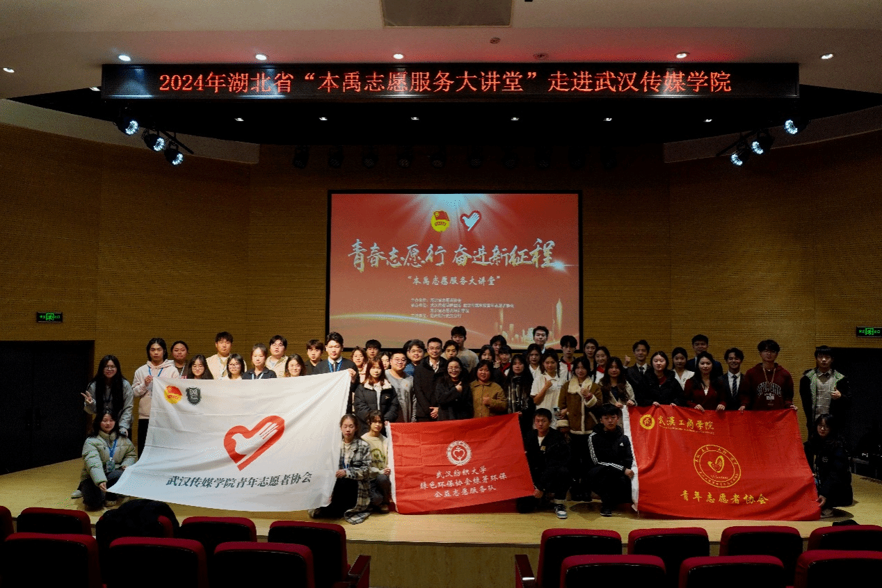 12月4日下午,由湖北省志愿者协会主办,湖北省志愿者培训学院、武汉传媒学院团委、武汉传媒学院青年志愿者协会承办的2024年湖北省“本禹志愿服务大讲堂”走进武汉传媒学院省级示范宣讲活动隆重举行,武汉纺织大学绿色环保协会受邀参加。本次活动聚焦志愿服务精神的传承和弘扬,吸引了众多师生参与,共同见证高校志愿服务团队的风采与担当。