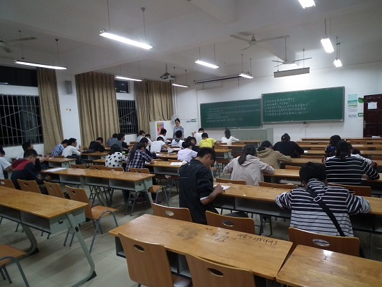 为了迎接十八届四中全会的召开,深入理解“法治”的概念,在学习生活中严格树立规则意识,10月19日晚,环境学院全体新生在六栋教学楼举行大学生规章制度汇编考试。