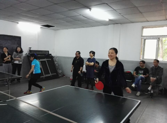 4月23日,在南湖校区乒乓球场,环境学院分工会组织教工代表队参加了学校乒乓球比赛。
