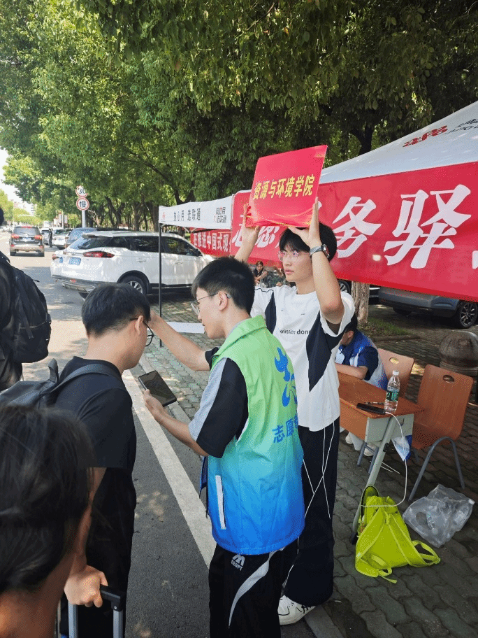 志愿身影“暖心”,风雨亦坚守。志愿者们全天候在岗,答疑、引路,让新生与家长倍感亲切。迎新两日,天气变幻:首日狂风暴雨,次日烈日高温,可无论是身披雨衣的坚守,还是汗湿衣衫的忙碌,他们始终认真帮每一位新生完成登记。党员先锋队也活跃在校园里,热情接过新生手中的行李,让“志愿红”成为迎新季最亮眼的色。