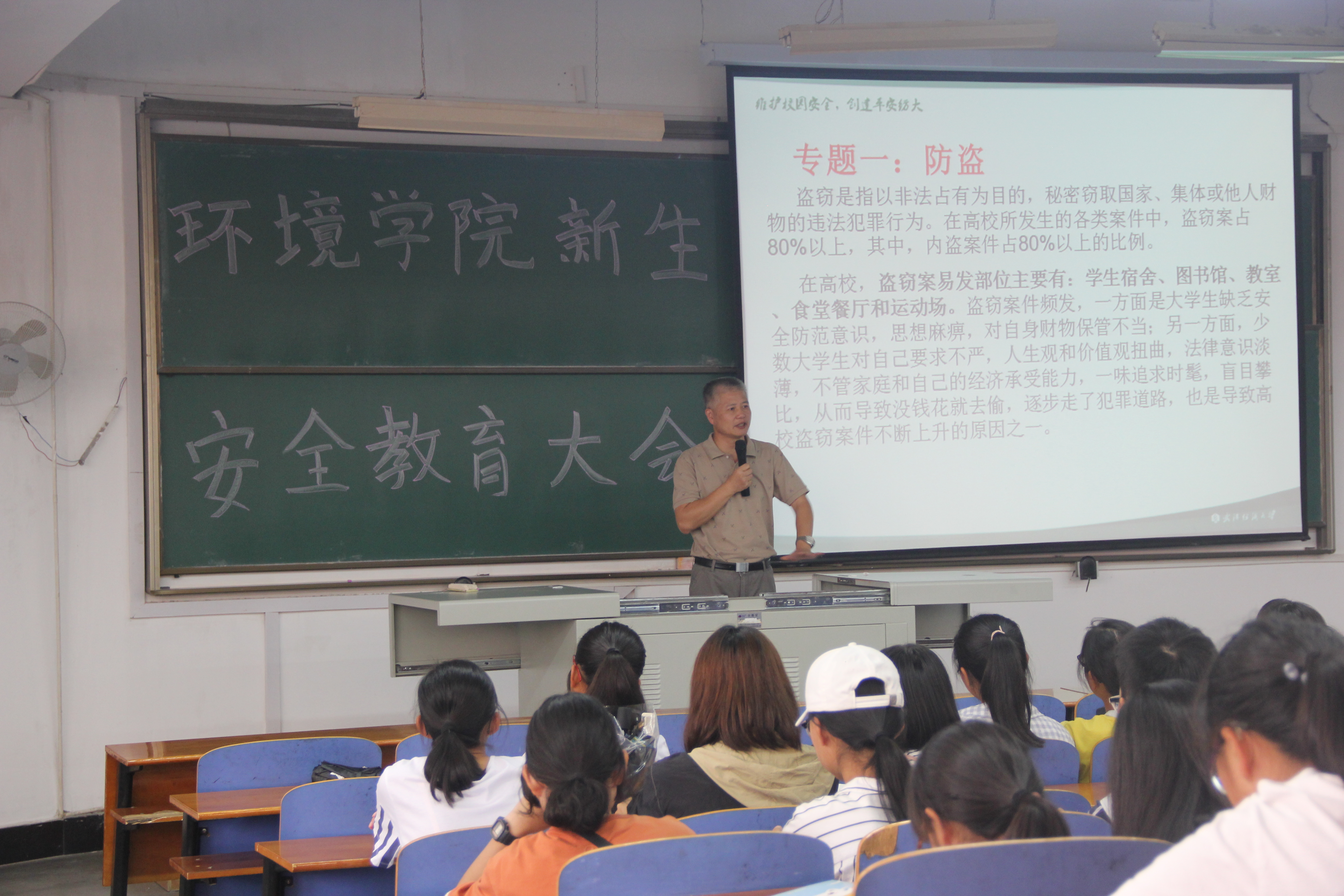 本次会议共有八个专题,分别为防盗、防骗、防抢、防火、校外租房隐患,安全保障、交通安全、意外事故导致的悲剧、法制观念的重要性 ,遵纪守法。会议中尚老师着重强调防盗与防骗,提醒学生食堂、教室、图书馆、运动场为盗窃主要事发地点要提高警惕,多留一分心。推销、网络电信诈骗、传销为主要诈骗手段,要防止个人信息外泄。会议期间尚老师多次列举实例提醒同学们要提高安全防范意识。同时提出要增强法制观念,不说反党、反社会、反国家的言论,不做反党、反社会、反国家的事,争做合格好公民。