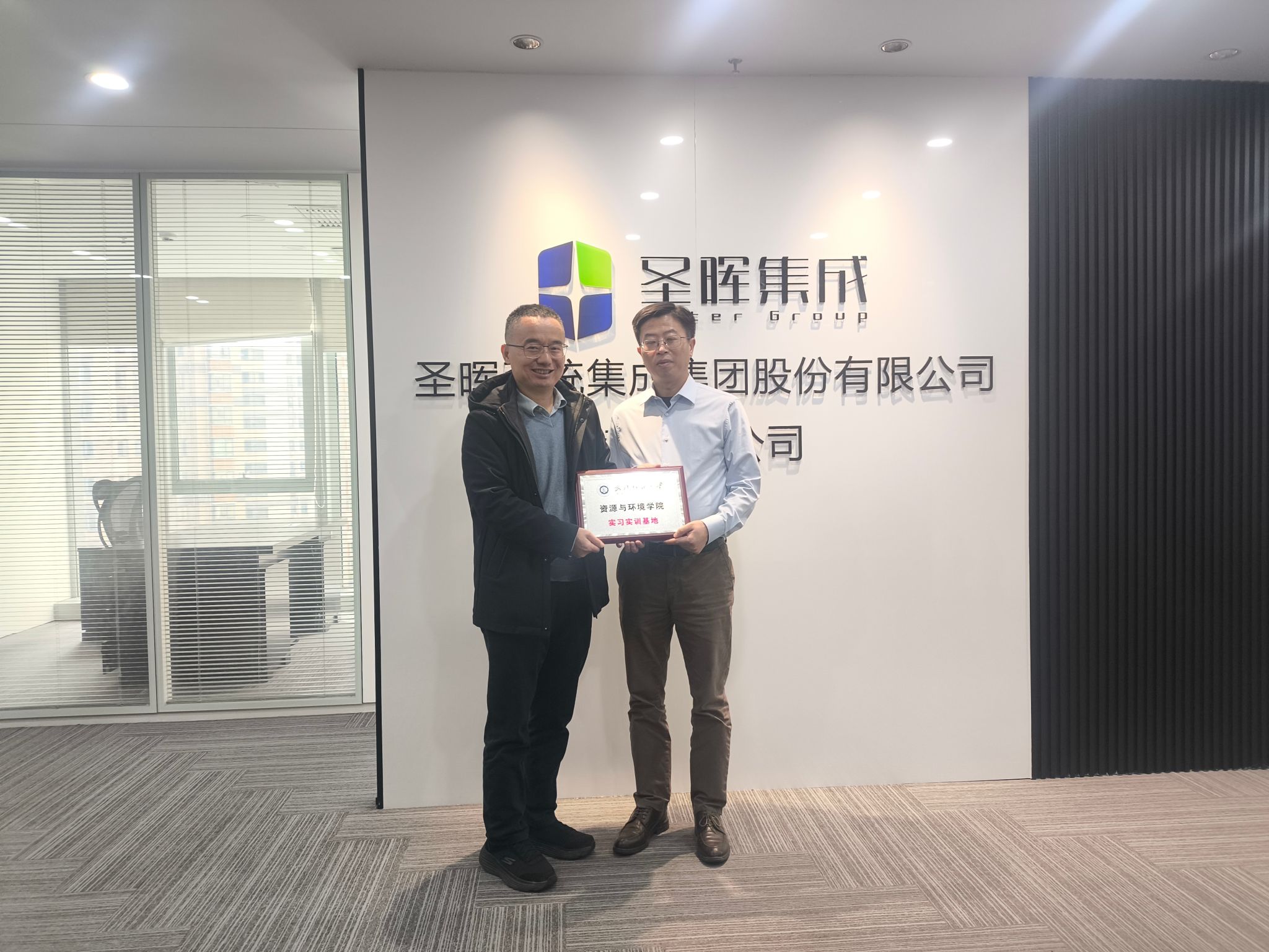 郭俊感谢圣晖集团的热情接待,介绍了学校近几年取得的成就和争创“双一流”高校的优势,并指出企业和学院可以在技术攻关、联合党建、文化交流、培养高质量学生等进一步加强交流合作的方向。潘飞代表学院介绍了学院的专业设置、学科发展、学生情况等,并提出与企业合作设立研究生工作站的初步想法。