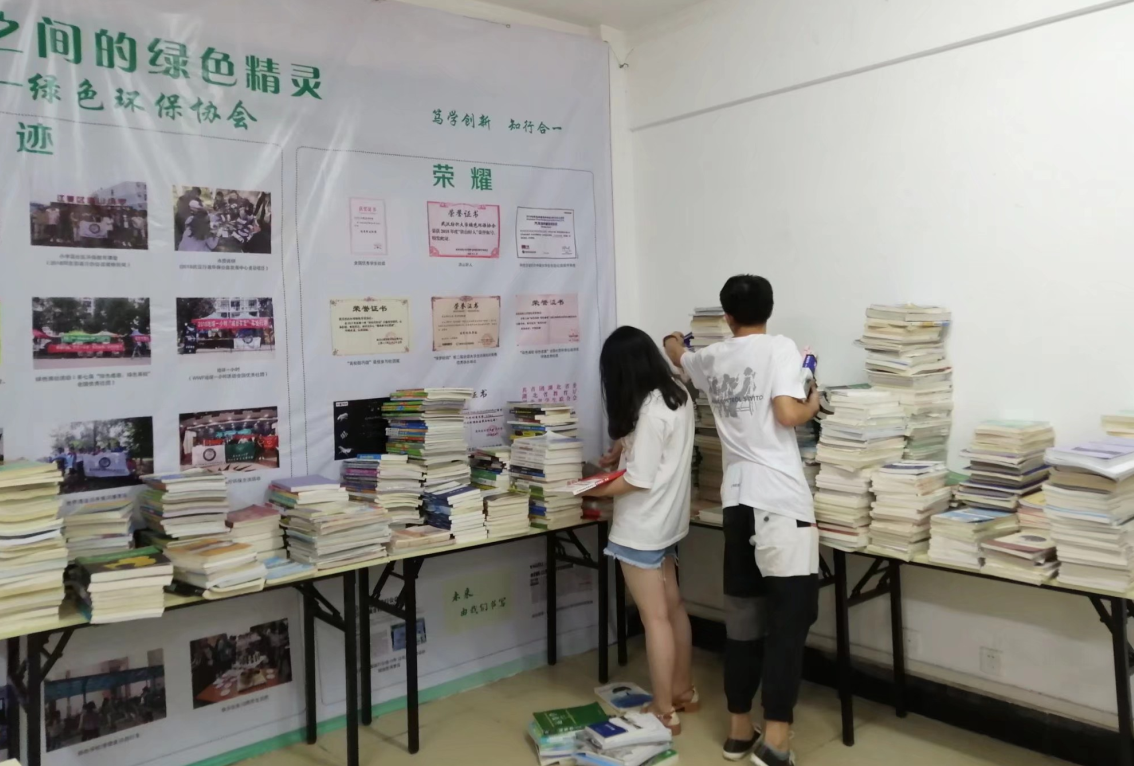 5月31日,绿协在一食堂前启动了2019年“绿色离校·绿色感恩”活动,主题为“带走回忆,留下爱”,主要对毕业生书籍进行回收,将收集的书籍整理归档后存放在学院阅览室,有需要的同学可以自由取走使用,解决了毕业生书籍处置的难题,同时通过爱心捐赠的方式,用实际行动回报母校、为学弟学妹留下美好印记,也提前践行了社会责任。
