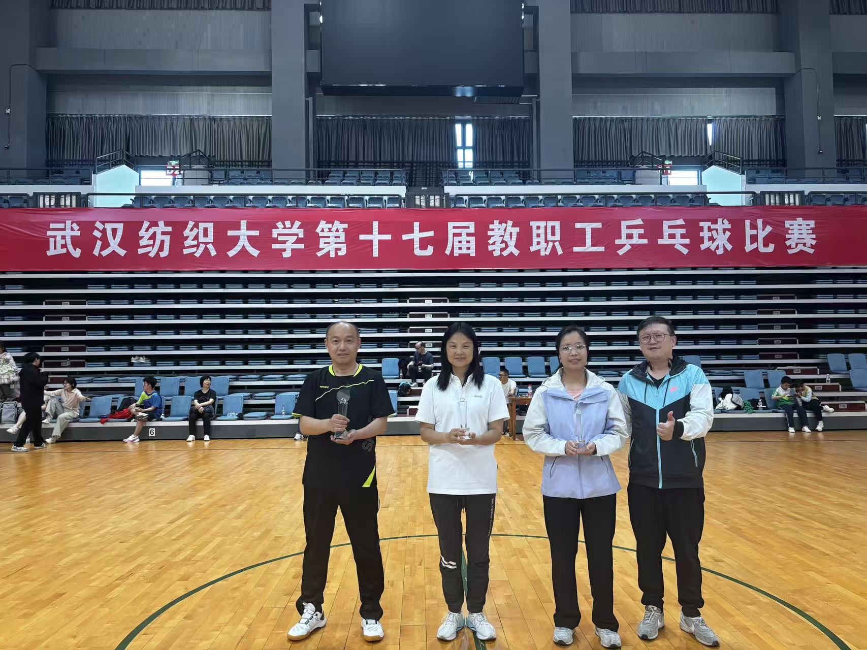 4月25日,武汉纺织大学第十七届教职工乒乓球比赛在阳光校区体育馆圆满落幕。本次赛事由校工会主办,旨在丰富教职工业余文化生活,增进各单位交流协作,激发教职工体育锻炼热情,全校各分工会代表队齐聚一堂,切磋球技、共展风采。我院积极响应号召,组建教职工代表队参赛,凭借扎实的球技与顽强的拼搏精神,最终荣获优胜奖。
