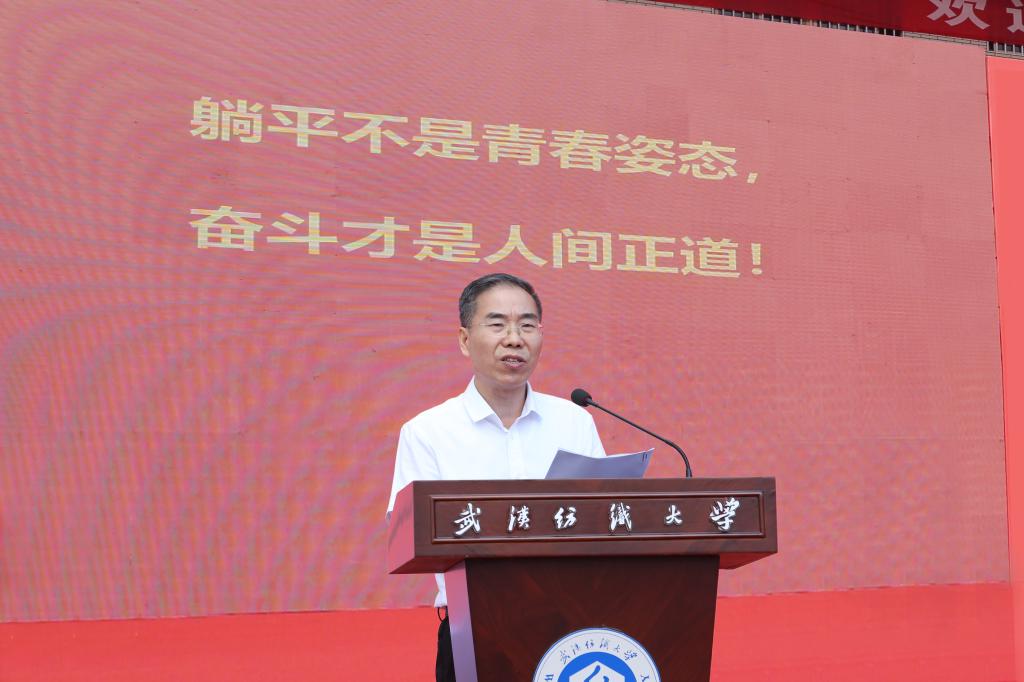 徐卫林校长先是欢迎了我们新生的到来,他赞扬了我们过去的努力,并鼓励我们在今后的学习生活中不要懈怠。然后,徐校长介绍了纺大悠久的历史。武汉纺织大学是一所历史久远的大学,学校中学院众多,师资力量强大,并具有良好的学习氛围。在纺大,我们一定会度过充实美好的四年。除此之外,徐卫林校长还为我们提出了一系列建议,教导我们要心怀家国,也要完善自我。