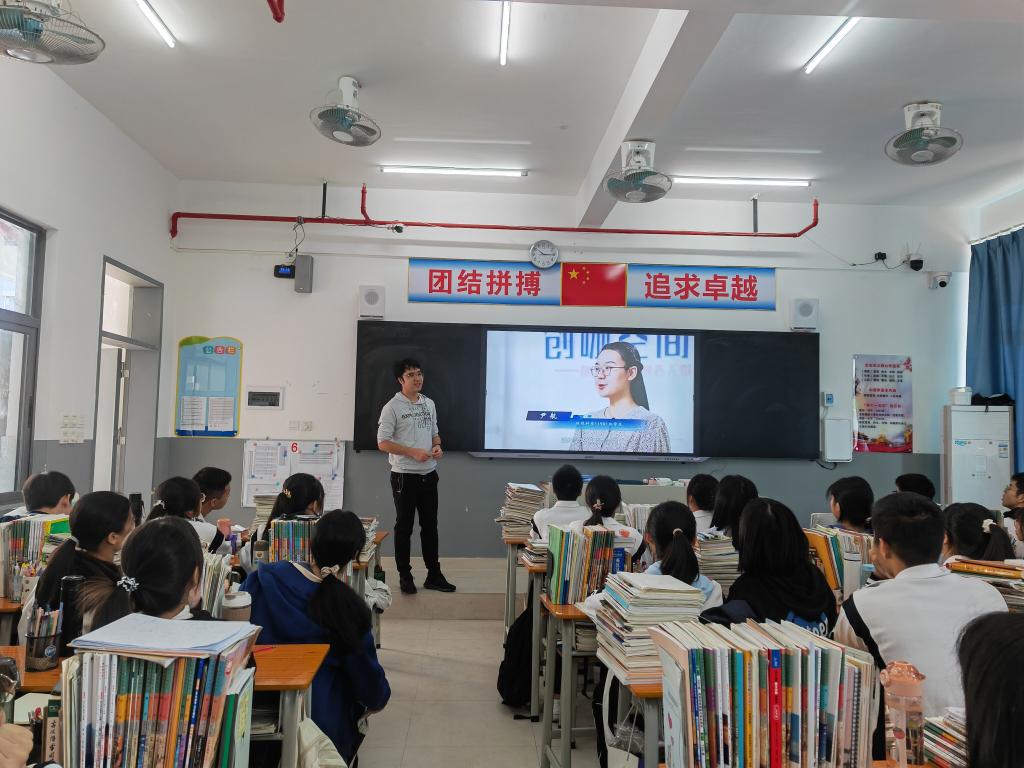 通过本次讲座,同学们对如何当好生态卫士,如何在生活中践行环保理念有了更深刻的认识。讲座结尾,张朋程为大家播放最美纺大宣传片,架起母校与宜丰一中之间的沟通桥梁,他表示,“母校招生宣传片是引导中学学子向高等教育迈进的起点。希望同学们能够从现在开始勤奋学习,把握机遇,步入理想大学。”