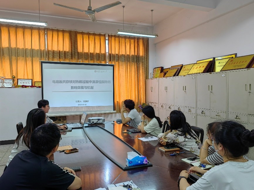 王腾副教授,陈思副教授,刘静欣博士依次作了题为《印染污泥-生物质精准协同焚烧过程中污染物的原位控制》,《废旧纺织品热解高值化利用及污染物控制》,《电路板共存铁对热解过程中溴原位脱除的影响效能与机制》的学术报告,重点介绍了自己的研究课题和近期取得的研究进展。主讲内容涵盖了纺织行业“三废”的处理及资源化应用等领域,代表了学院最新的研究进展及纺织与环境交叉的特色研究方向。报告结束后,与会教师针对讲座内容进行踊跃提问与讨论。本次报告内容为我院师生拓展研究思路、开阔学术视野提供了帮助,并极大地助力学院良好学术氛围建设。