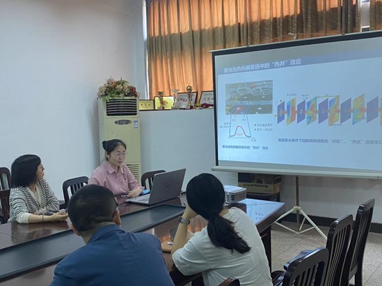 陈月博士,池寰瀛博士,裴轩瑗博士依次作了题为《生物质基抑爆剂作用下粉尘爆炸火焰传播行为规律及抑制机理》《基于“热井”温度场构筑和化学反应调控的聚光光热热解废轮胎定向制备柠檬烯》《污泥生物炭活化PDS降解新污染物》的学术报告,重点介绍了自己的研究课题和近期取得的研究进展。三位老师的报告内容涵盖了生物质及废轮胎、废污泥等资源化应用等领域,为我院师生拓展研究思路、开阔学术视野提供了帮助,并极大地助力学院良好学术氛围建设