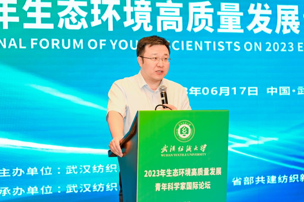 2023年6月17日,“2023年生态环境高质量发展青年科学家国际论坛”在武汉纺织大学举办。该论坛由武汉纺织大学研究生院主办,环境工程学院、省部共建纺织新材料与先进加工技术国家重点实验室承办。环境工程学院院长潘飞教授主持,校党委常委、研究生院院长王栋教授致欢迎辞。