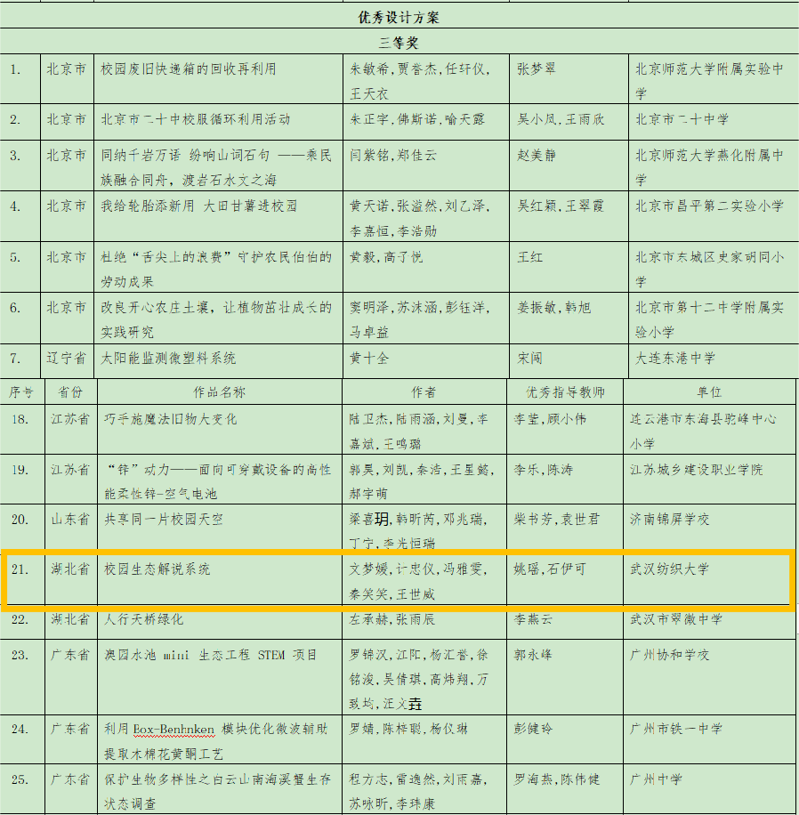 由生态环境部宣传教育中心主办的2023年青少年环保创新活动美境行动”于近日落下帷幕,经过激烈的竞争专家评审,武汉纺织大学绿色环保协会的“校园解说牌”项目6000份项目中脱颖而出,荣获优秀设计案组项目三等奖