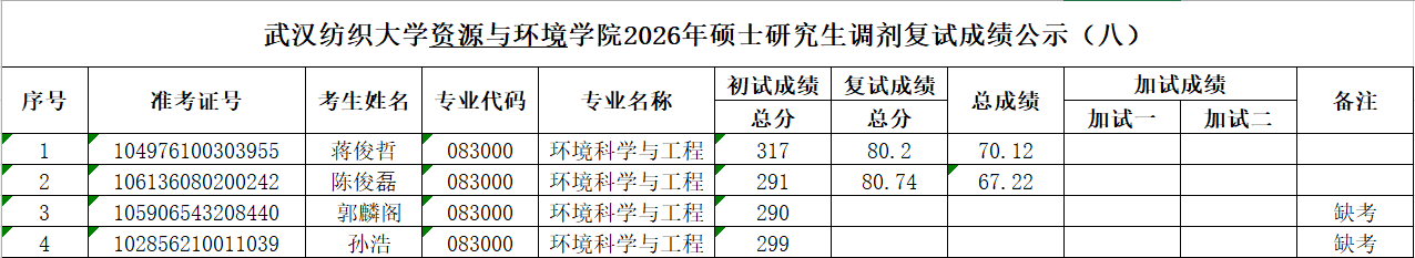 根据《武汉纺织大学2026年招收攻读硕士学位研究生复试录取方案》等文件精神,现将开云kaiyun官方网站2026年硕士研究生第八轮调剂复试成绩公示。公示时间:2026年4月19日-21日.
