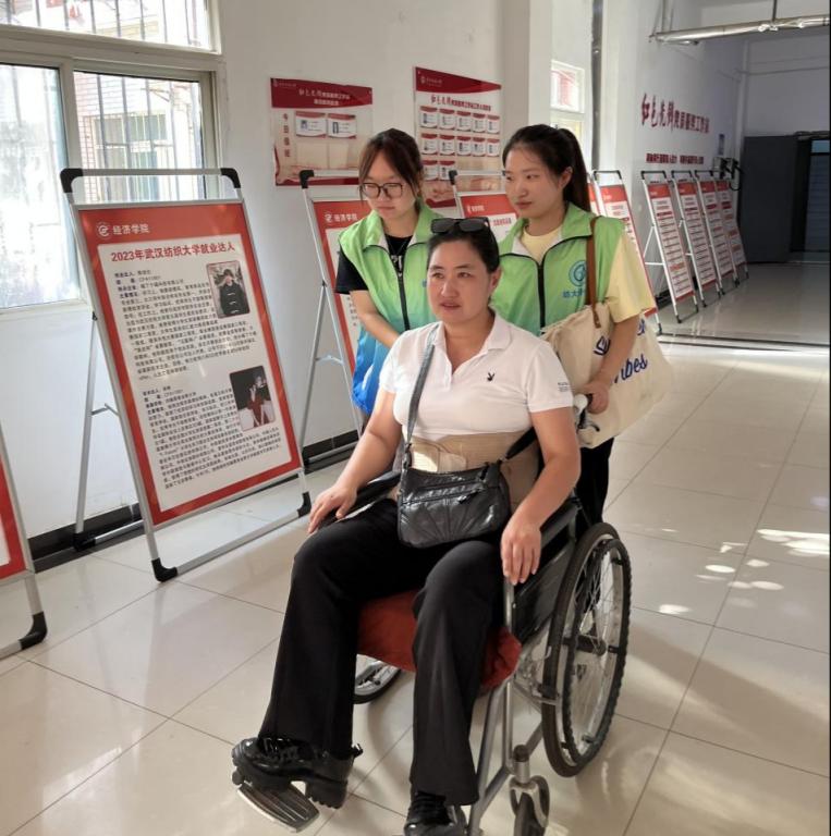 了解到学生的需求后,学院组织“党员先锋队”陪同孩子一家游校园。在党员先锋队的带领下,郭雪荣推着妈妈走进干净整洁的宿舍、走进宽敞明亮的智慧教室......郭妈妈拿起手机拍照留念:“这里的老师和蔼亲切、同学也热心可爱,荣荣在这上学,我们很放心。”