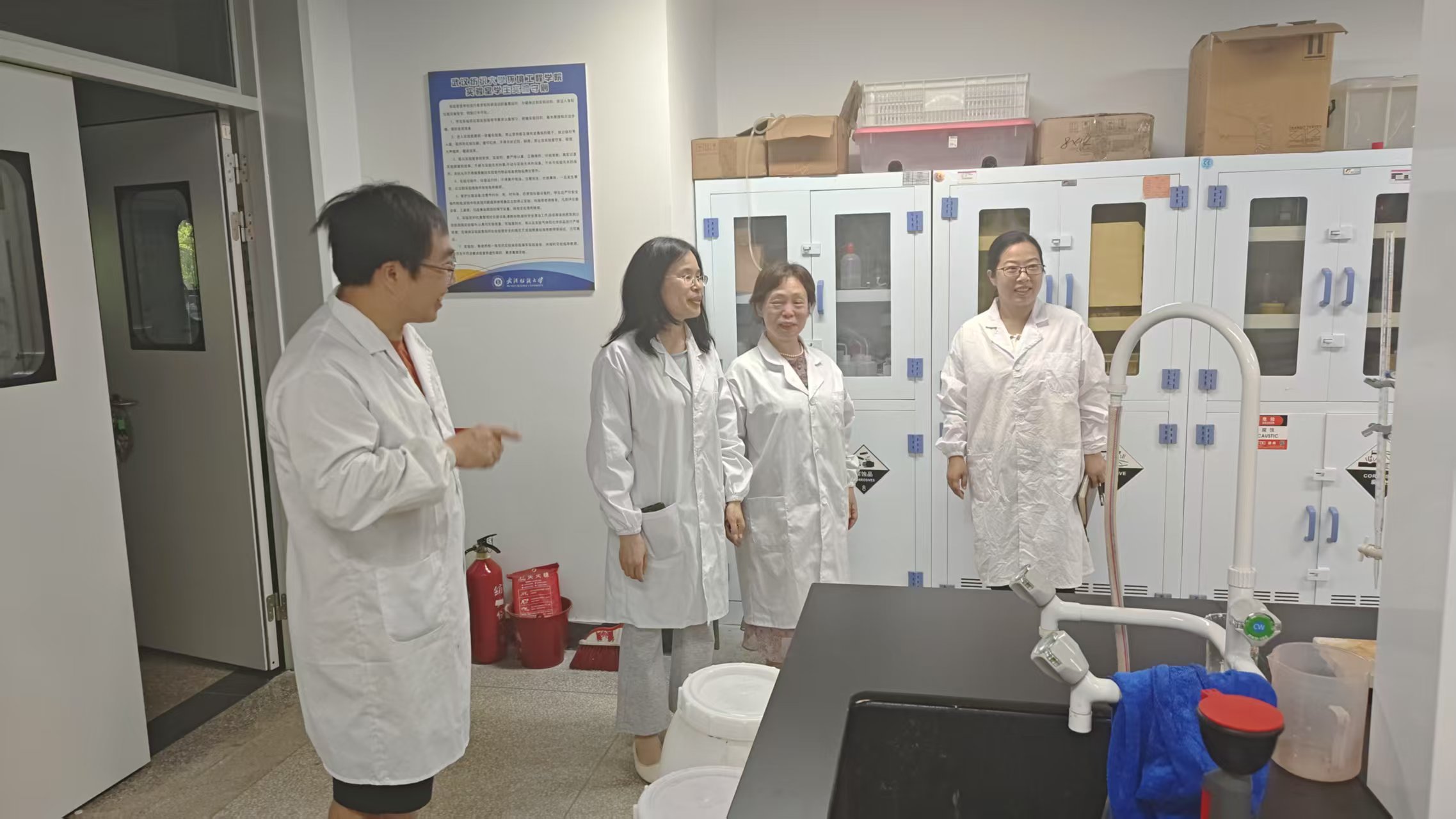 检查组重点排查了实验室卫生、危险废物管理、设备存放及水电安全等情况。检查中发现,部分实验室存在卫生状况不佳、实验垃圾未及时清理等问题,尤其是危险废物未按规定分类处置,存在一定安全隐患。谢书记强调,实验室安全无小事,各实验室负责人须立即整改,严格落实安全责任,确保假期安全稳定。