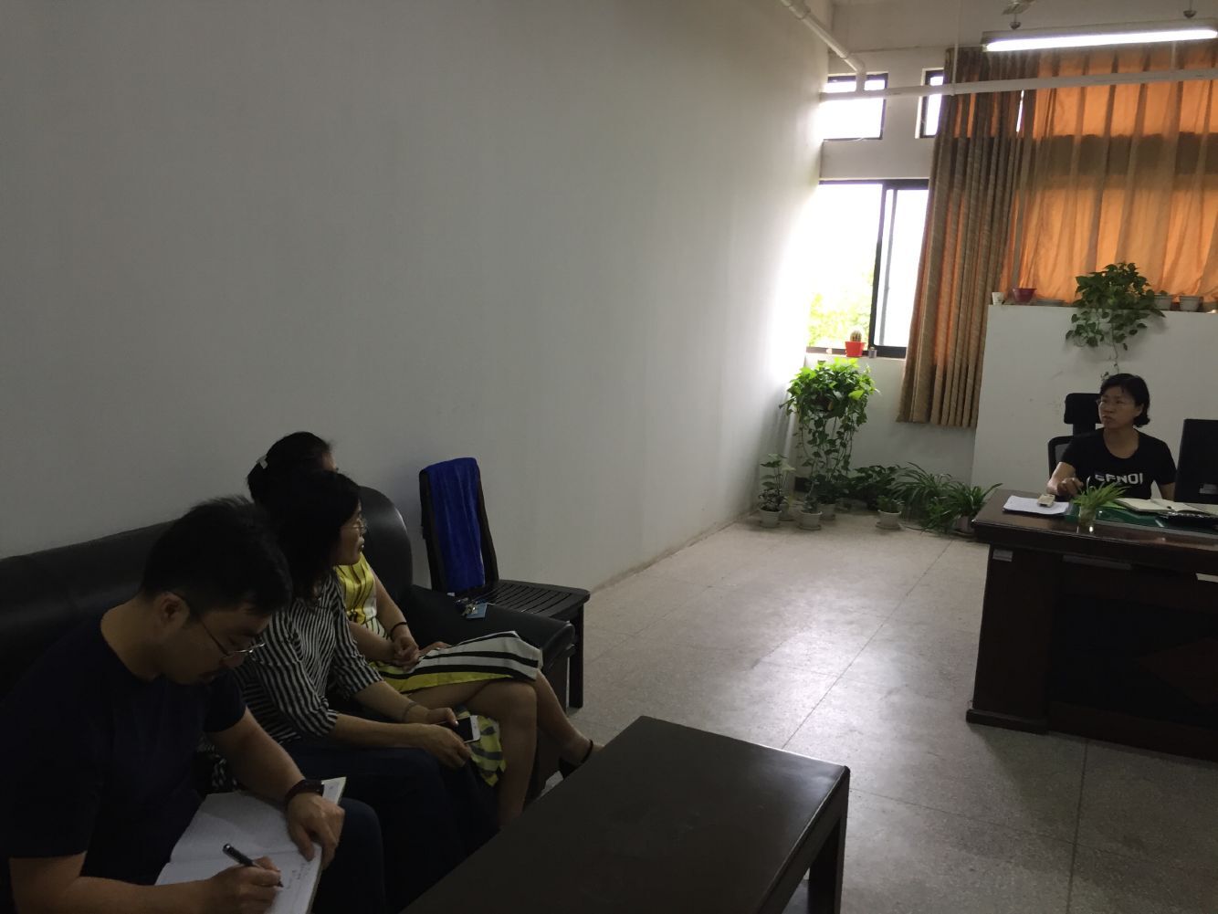 实验室主任孙磊老师与实验人员就具体管理工作进行讨论。现场解决环境监测实验室耐腐蚀药品箱不足的问题,与资产处沟通并安排专人对接关于购置安全气瓶固定装置,与相关老师沟通移走公共实验室的个人设备等事情。