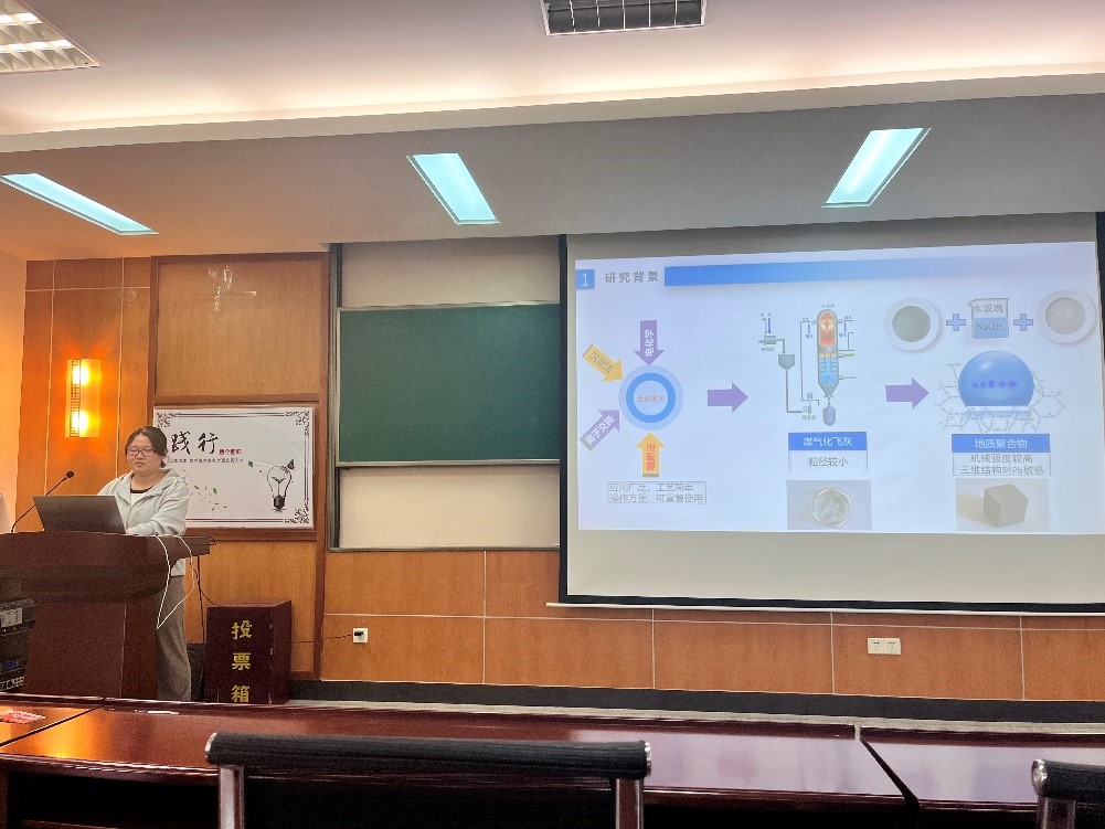 卢萌同学采用水玻璃和NaOH为碱激发剂,双氧水为发泡剂,利用煤气化飞灰、钢渣和偏高岭土合成多孔地质聚合物,深入研究该材料对含铅废水的吸附性能研究。