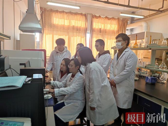刘静欣(左三)带领学生学习大型仪器操作