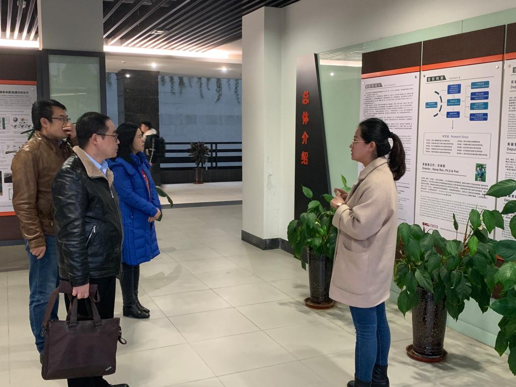 在哈工大环境学院博士生导师张军、国家重点实验室办公室副主任吴洁、国家工程研究中心办公室主任郑成志的带领下,潘飞一行参观了该校的城市水资源与水环境国家重点实验室、城市水资源开发利用(北方)国家工程研究中心等科研平台,并作了题为《印染废水深度处理》的学术报告,简要介绍了我校纺织印染清洁生产教育部工程研究中心的研究领域、人才队伍、产出成果等情况。