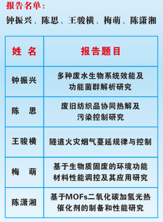 本次论坛以“环境材料与污染控制”为主题,青年教师钟振兴、陈思、王骏横、梅萌、陈潇湘等5名博士就最新开展的研究研究工作一一进行了交流分享,教授委员会成员对报告进行了提问和逐一点评。
