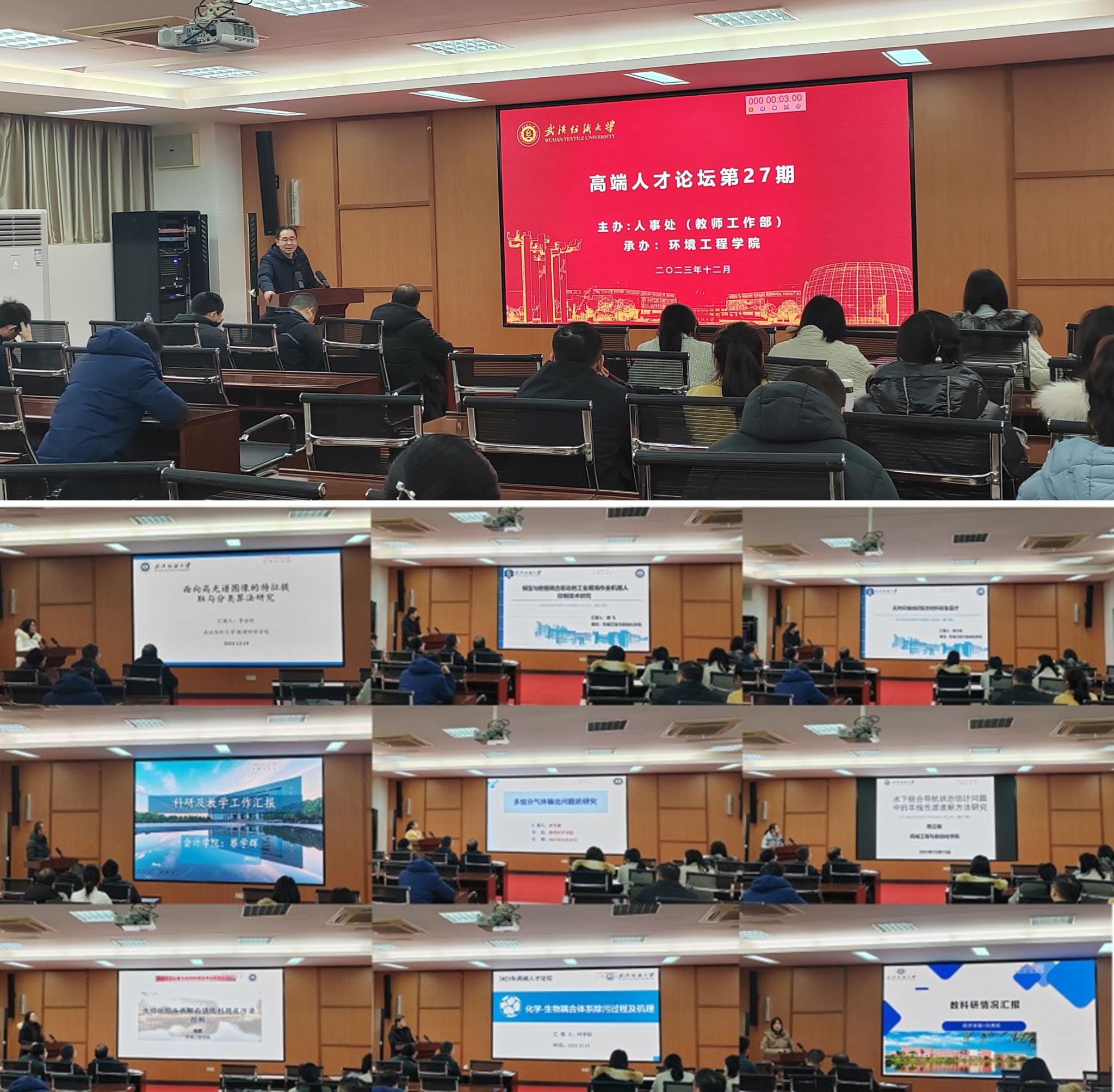 为促进学术交流与合作,推进我校学术生态建设,拓宽学术视野,12月15日下午,由人事处主办、环境工程学院承办的2023年第27期高端人才论坛在崇礼楼06-310举行。环境工程学院、会计学院、机械学院、计算机学院、经济学院、生物工程与健康学院和数理学院2018-2022年引进的部分教师,以及各学院部分研究生和本科生参加论坛,论坛由院长潘飞教授主持。