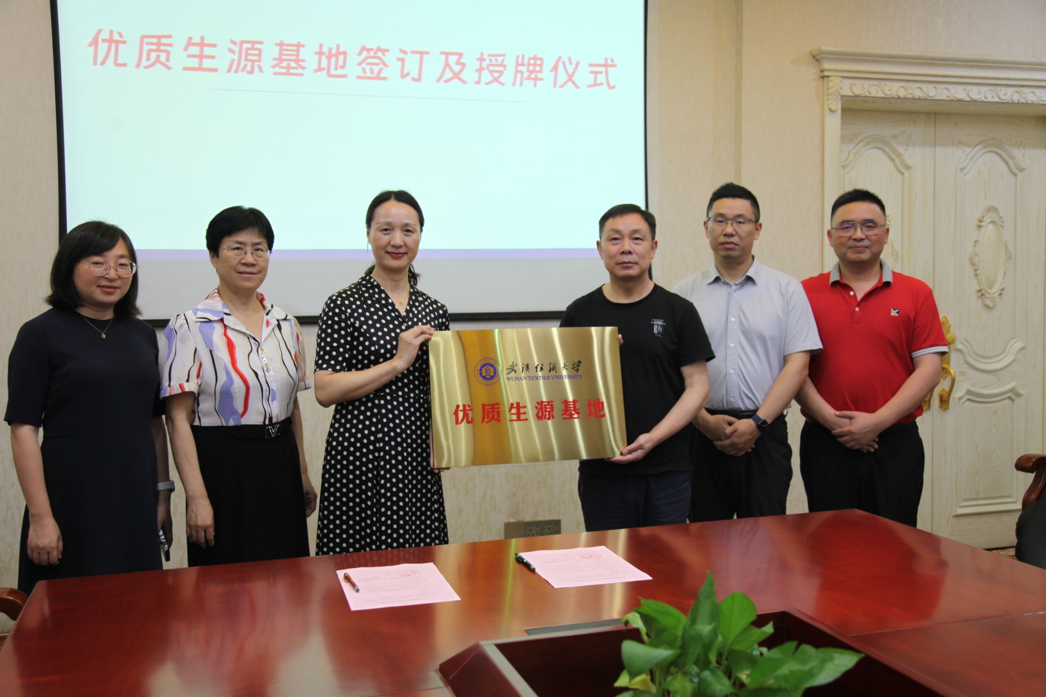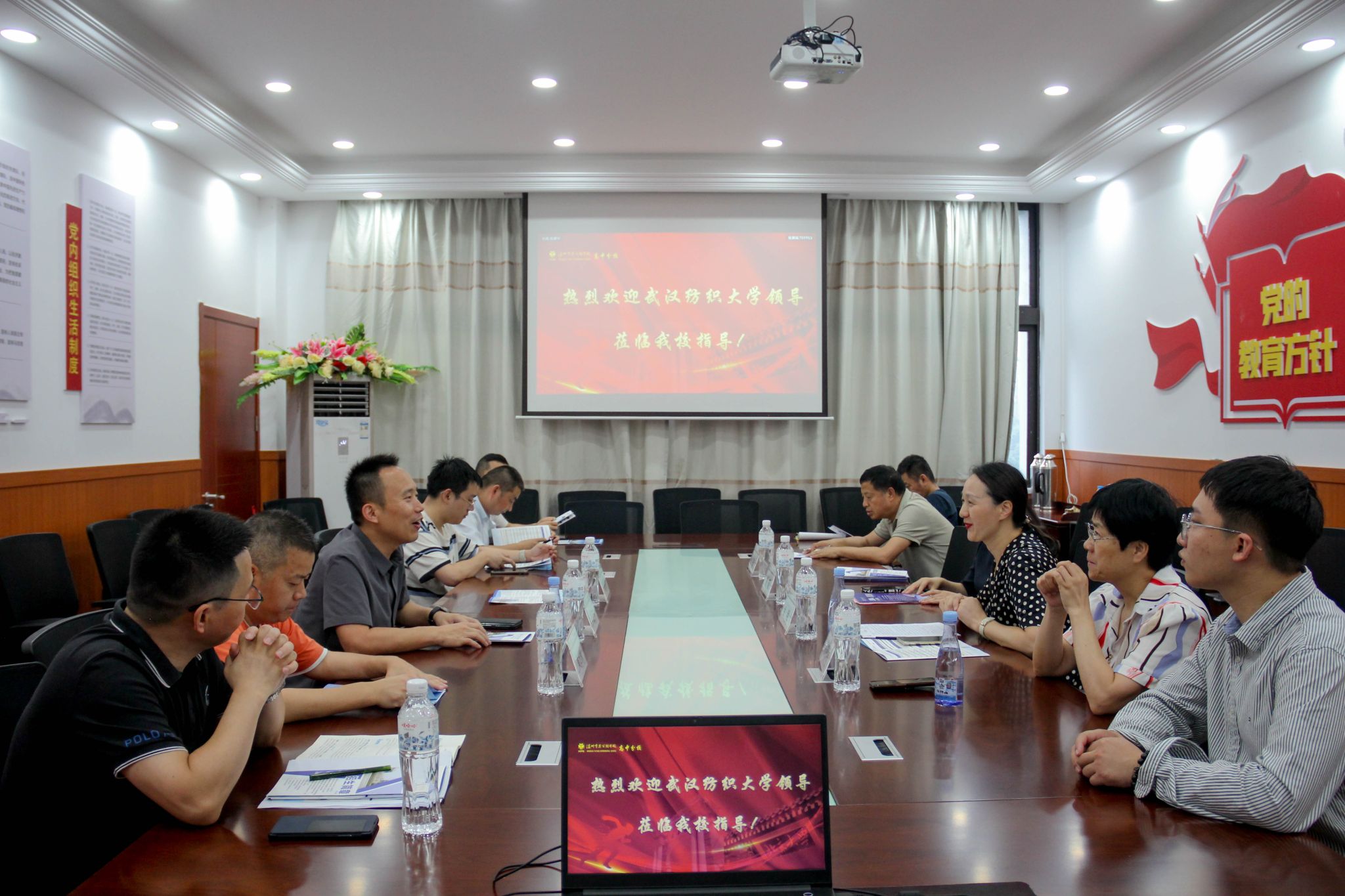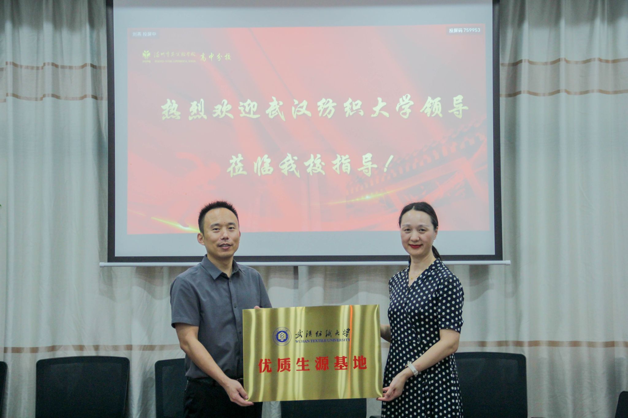 在温州育英实验中学座谈会及授牌仪式上,高中部校长李亚林介绍了学校的办学历史及办学成果,表示希望推荐更多同学进入纺大学习,金艳从发展历史、区位优势、特色专业、招生政策等方面介绍了我校近年来取得的显著成绩,她表示希望与温州育英实验学校加强联系,通过“送文化”“送科技”“实践交流”等方式,共同探索创新型时代新人培养的新模式、新路径,高三年级班主任一同观看了《走进“不一样”的武汉纺织大学》宣传片,并进行了座谈,谢晓萍围绕招生政策和专业特色进行了答疑。