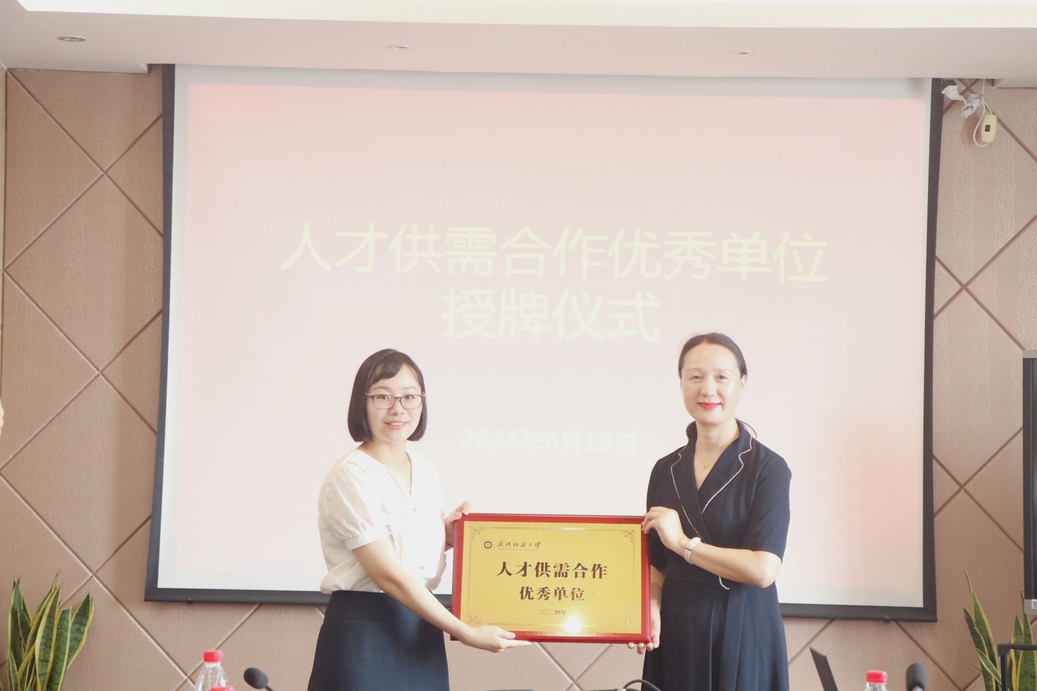 在温州市人才发展服务中心,主任张萍萍陪同金常委一行参观了人才中心智慧招聘大厅,并进行了校地合作交流。座谈会上,张萍萍对温州市人才引进政策、就业创业环境、“5+5”特色招聘模式等方面进行了详细介绍。金艳代表学校对温州市人才发展服务中心在岗位提供、招才引才等方面给予的支持表示了衷心的感谢,她从办学历史、学科特色、科研平台、师资队伍、人才培养等方面介绍了学校,希望后期进一步加强校地合作,实现拓展温州生源、推荐返温就业的生源地人才培养闭环。会后,举行了“人才供需合作优秀单位”授牌仪式。