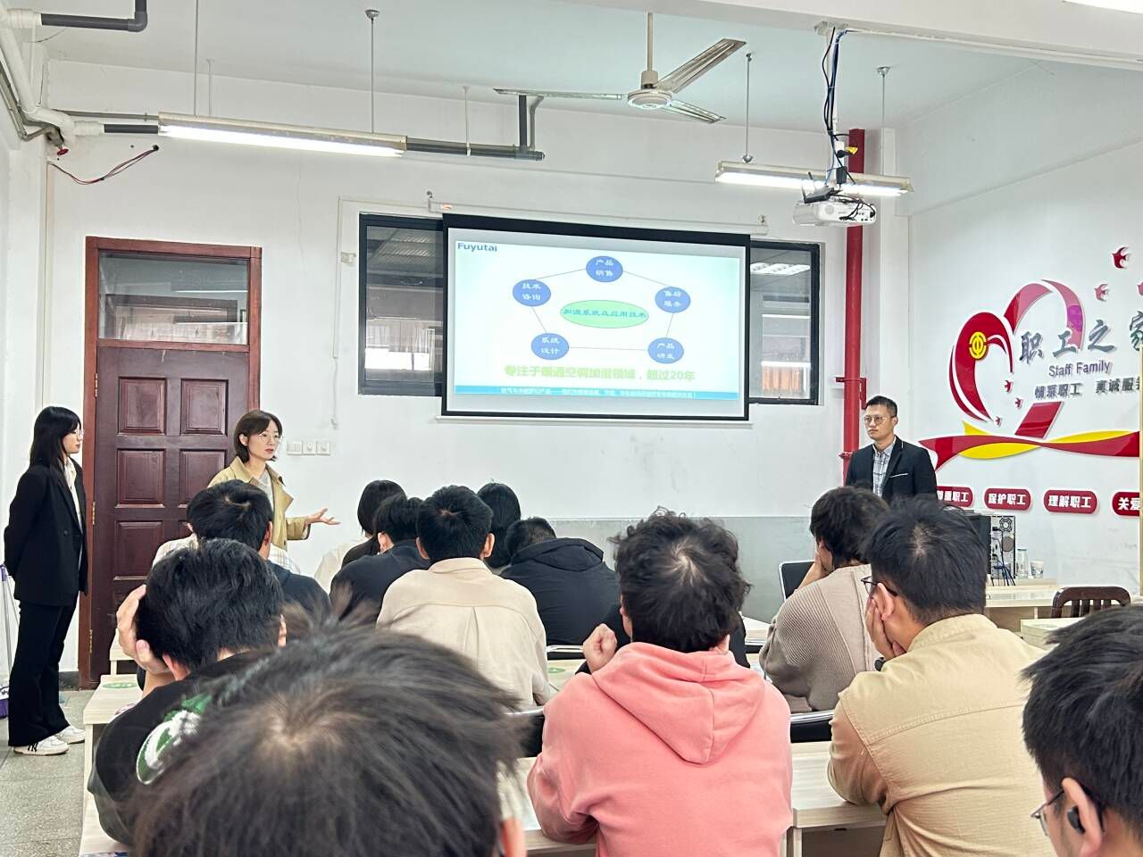 10月21日上午,北京福裕泰科贸有限公司人力资源代表宋云一行在06-210教室面向2025届毕业生进行专场宣讲。
