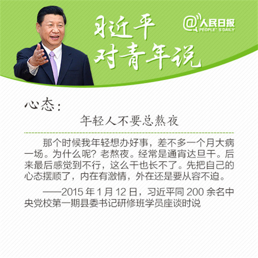人民网北京5月4日电 人民日报微信公众平台于5月4日刊发《习近平对青年说的9句话》一文,全文内容如下: