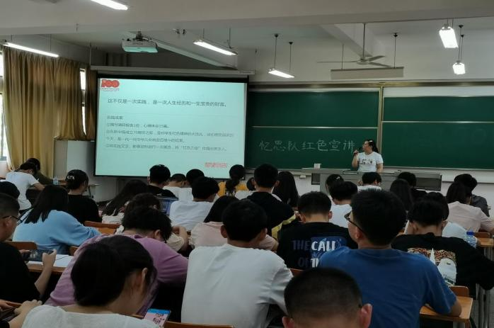 “培养青年学子革命情怀,增强历史使命感和时代责任感”,学生党员梁祺睿介绍了红色·忆思队的历年的红色实践活动。