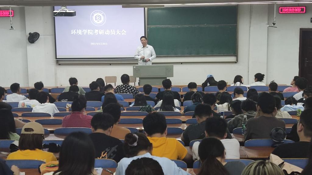 为激发2018级同学报考研究生的积极性、鼓舞士气。6月28日下午,环境学院在崇志楼T-102教室举行考研动员大会,院长夏东升、副书记刘园美、辅导员李文倩参加了会议。