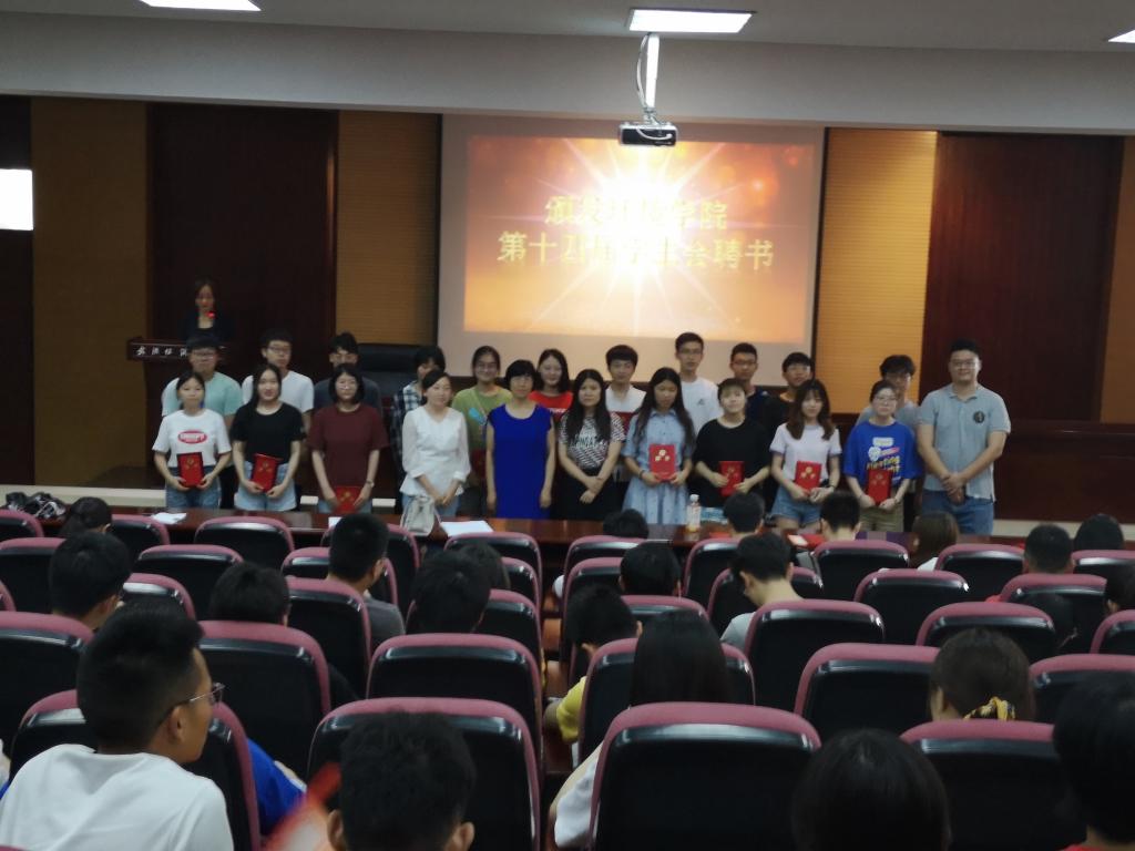 学院于2019年6月27日在八栋行政楼学术报告厅举行了年度表彰大会。本次大会由学院学生会组织部部长李默涵主持。学院党委书记谢晓萍,学生会指导老师刘文祥、绿色环保协会和心理二级站指导老师姚瑶、党支部负责老师李文倩莅临本次大会。