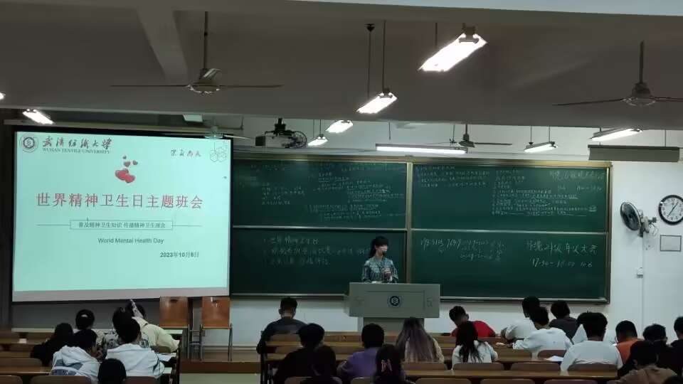 班会伊始,各班班主任首先向同学们介绍了世界精神卫生日的由来及其意义,强调了关注心理健康对于个人成长和社会发展的重要性,还分享了“心理健康的十条标准”“如何甄别心理状况是否健康”等心理知识点。班主任重点向同学们介绍了近期即将开展的 “沟通理解关爱 心理和谐健康”世界精神卫生日主题活动”“心理微课大赛暨优秀学生主讲人选拔”“心理创意作品大赛”“团体辅导式班会大赛”“恋爱心动体验活动”等,鼓励同学们积极踊跃报名参加。