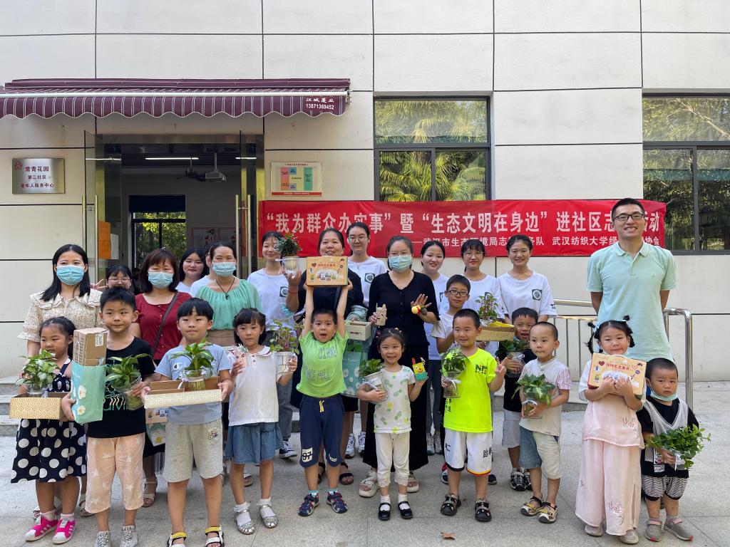 9月25日下午,武汉市生态环境局志愿服务队、武汉纺织大学绿色环保协会携手走进东西湖区常青花园,举办了一场别开生面的“我为群众办实事”暨“生态文明在身边”志愿活动,社区20余组亲子家庭参加了活动。