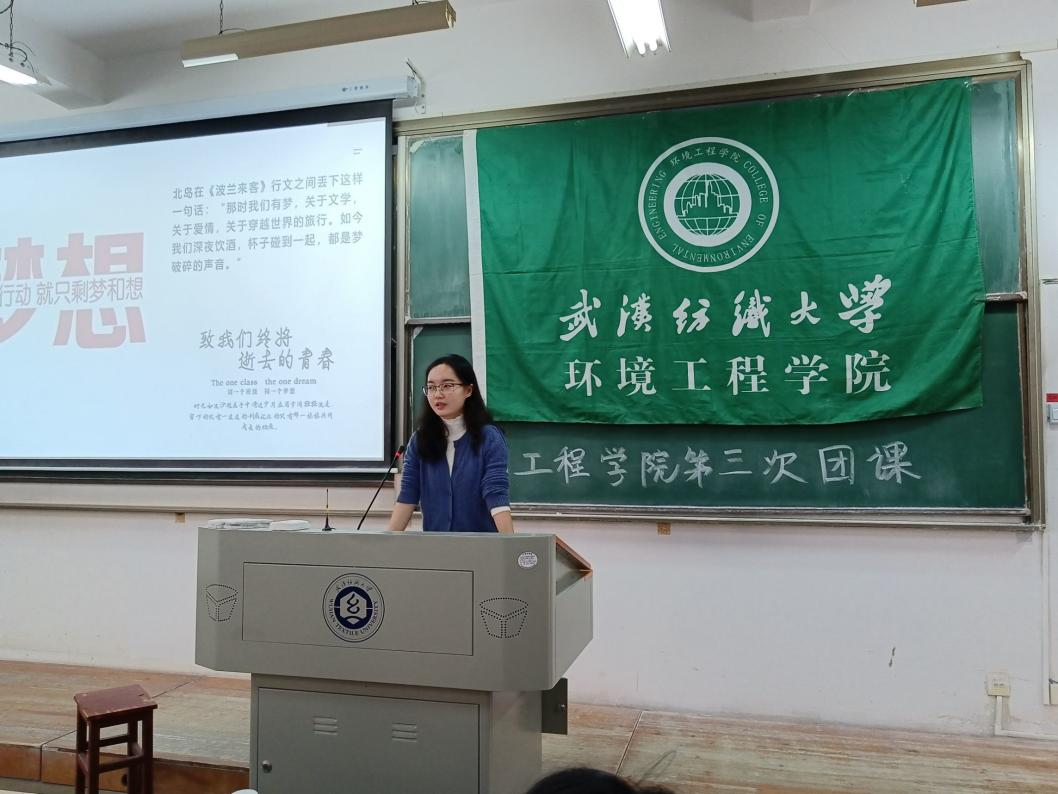 聚青年众志,汇青春力量,环境学院积极响应团中央“青年大学习”号召,深入学习宣传贯彻习近平新时代中国特色社会主义思想、党的十九大、“七一”重要讲话以及武汉纺织大学第二次党代会精神,10月28日下午,学院在03-217开展第三次团课活动。