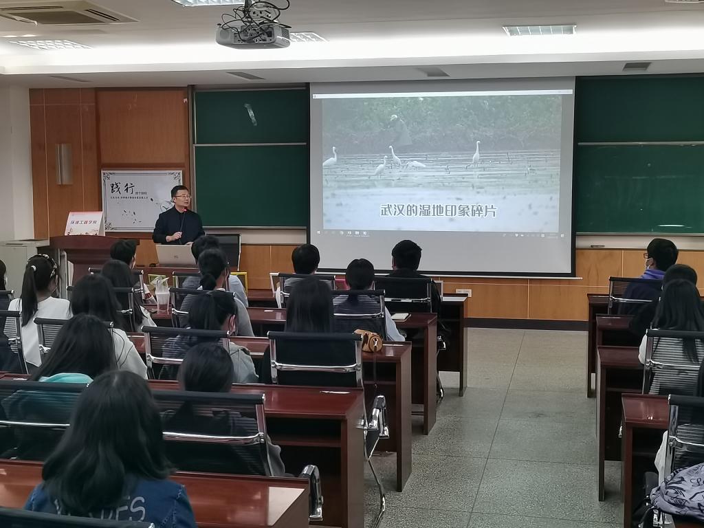 团队邀请纺织印染清洁生产教育部工程研究中心夏东升教授做《湿地资源的开发与保护——以武汉市为例》专题讲座,带领同学们认识湿地、了解湿地、保护湿地。讲座就“两山”理论和“双碳”目标等新发展理念下如何保护与开发湿地资源与同学们进行深入探讨。