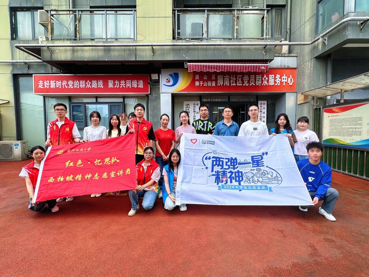 7月4日,宣讲团来到武汉市狮南社区与社区党员共同学习党章、进行“两弹一星”精神宣讲。从铭记卓越历史功绩、铭记功勋英雄群体、铭记伟大时代精神三个方面深入阐述了伟大的“两弹一星”精神,重温了钱学森、邓稼先、林俊德一个个可歌可敬的“两弹一星”功勋故事,生动解析了“热爱祖国、无私奉献,自力更生、艰苦奋斗,大力协同、勇于登攀”的“两弹一星”精神的深刻内涵和精神实质。