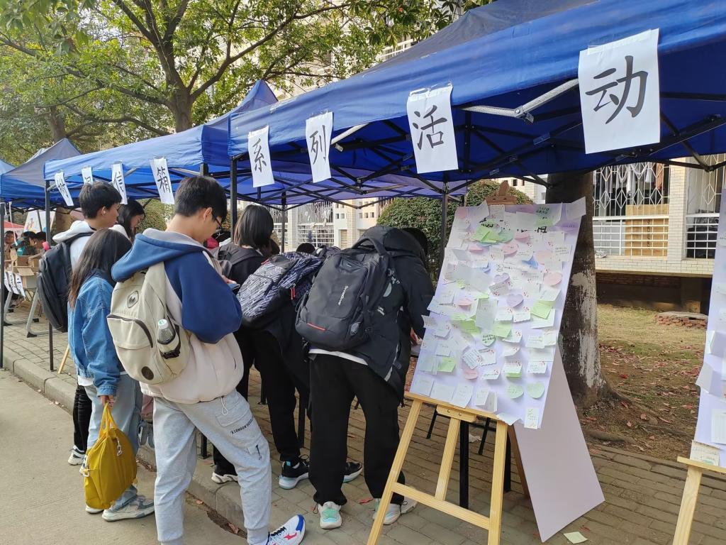 为满足同学们倾诉内心,表达疑惑、焦虑的心理需求,11月18日至19日,由环境学院心理二级站举办的“树洞信箱”活动在一食堂侧门开展。活动通过匿名书写、动手折叠等方式,引导同学们学会倾诉和求助,做自己心理健康的第一责任人。