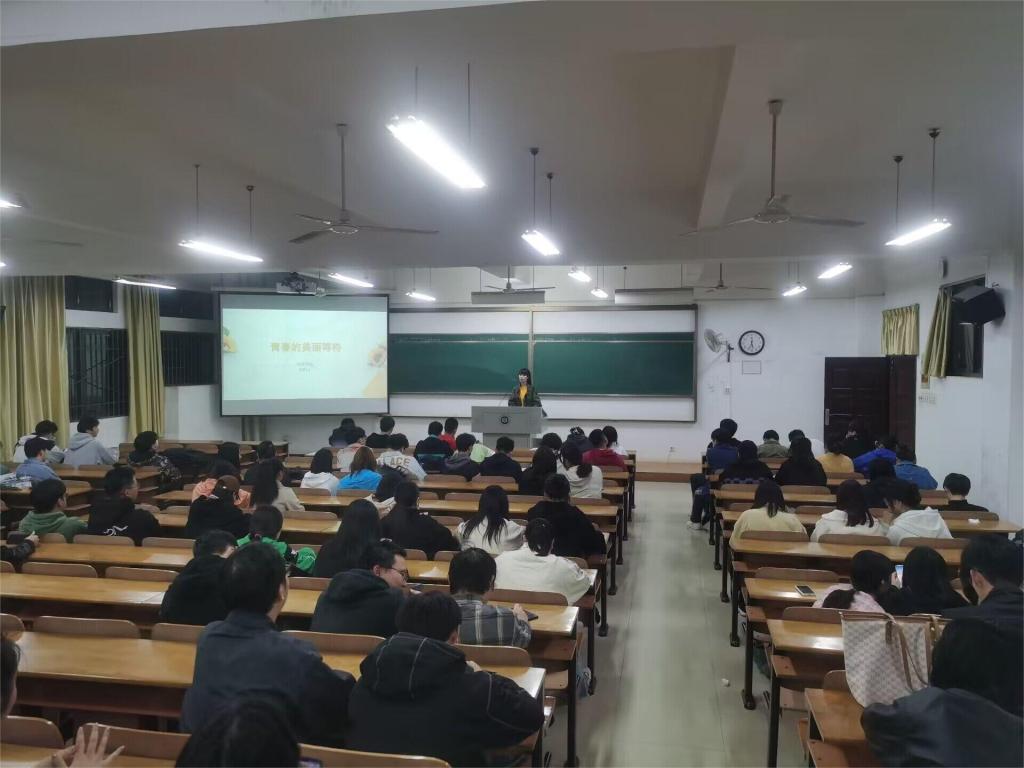 陈畅以“大学生如何树立正确的恋爱观”为主题,主要从“什么是爱情”、“爱情的特征”、“如何对待失恋”、“树立正确的恋爱观”等四个方面展开分享,结合自身经历,以亲切活泼的语言向同学们讲述恋爱心理知识。
