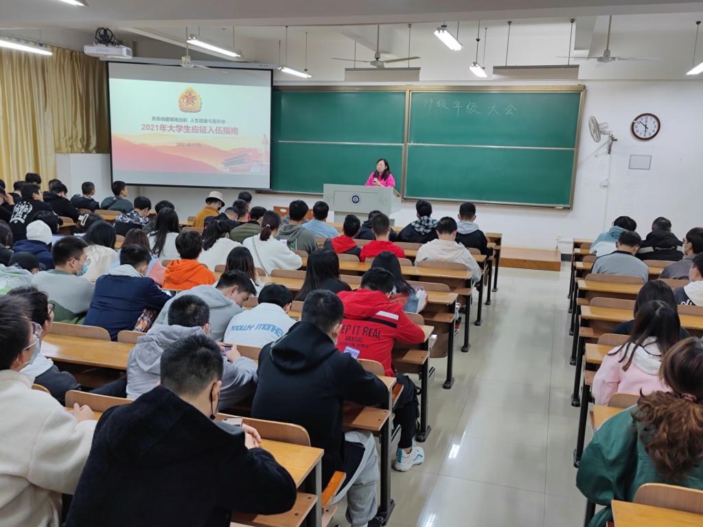 为进一步激发大学生参军入伍、报效国家的积极性,学院早部署、早动员,11月13日-14日,一场面向各年级征兵动员在环境学院拉开,各年级辅导员举行了入伍政策宣讲。