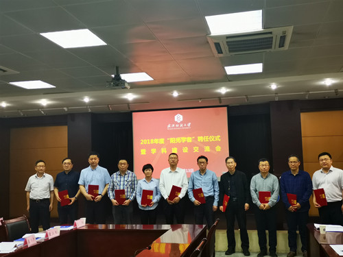 姜明华宣读了《关于公布2018年度武汉纺织大学“阳光学者计划”人选名单的通知》。自2018年11月启动“阳光学者”评审以来,得到了学院和广大教师的积极响应,经个人申报、所在单位推荐、相关部门审核、学术委员会专家评议,校长办公会、党委常委会研究,确定王栋、夏火松、夏东升、徐卫林、梅顺齐等5人为“阳光杰出学者”;包海峰、刘侃、吴锦峰、余联庆、傅欣等5人为“阳光特聘教授”;王跃丹、刘丽君、刘轲、李沐芳、张成俊、张南刚、陈东志、郑仟、侯德林、殷先泽等10人为“阳光青年拔尖人才”。